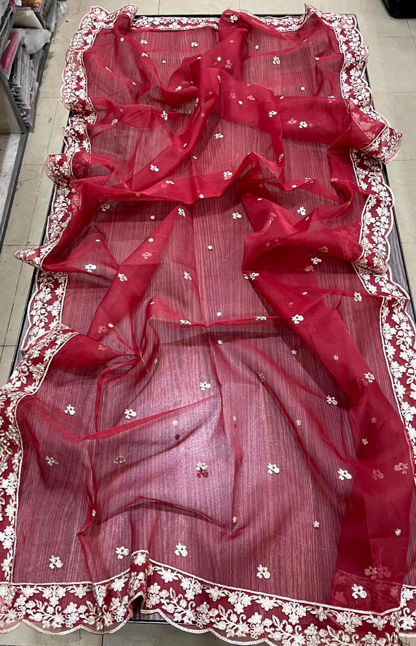 Dupatta Organza embroidery with 4 side ready too wear